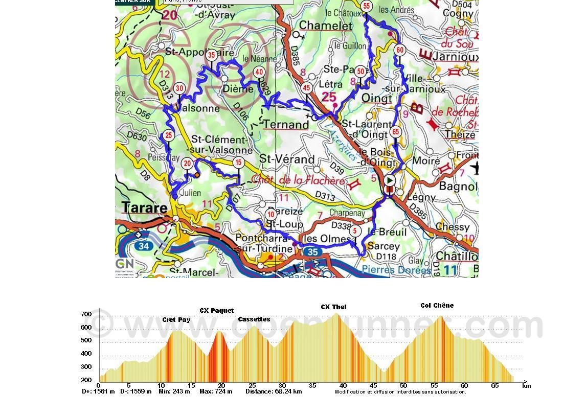 Au total les compteurs indiqueront 69km pour un dénivelé total de 1560m,beau parcours exigeant et très bosselé très bien avallé par toute la troupe