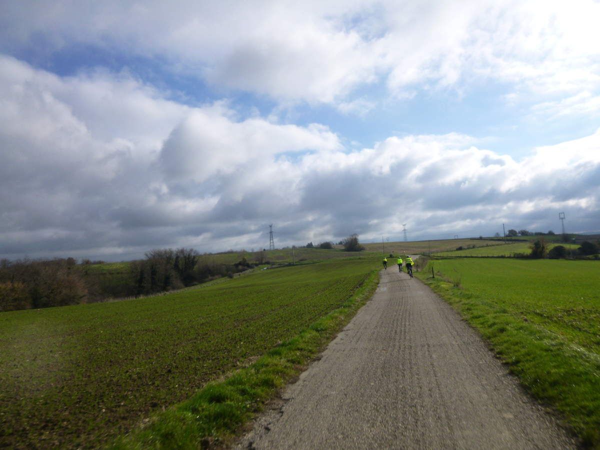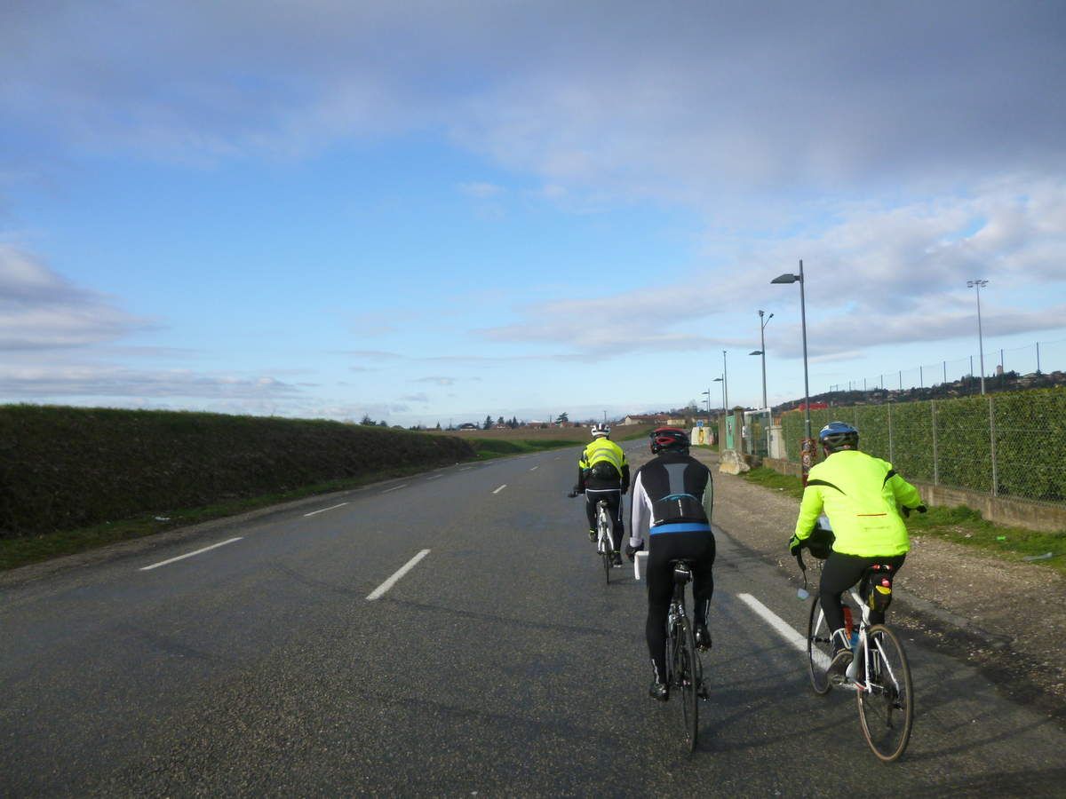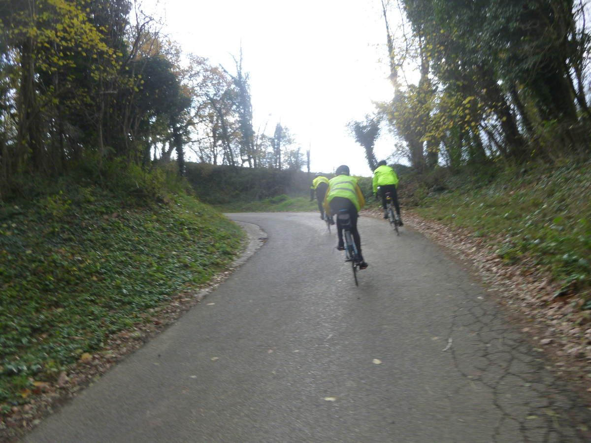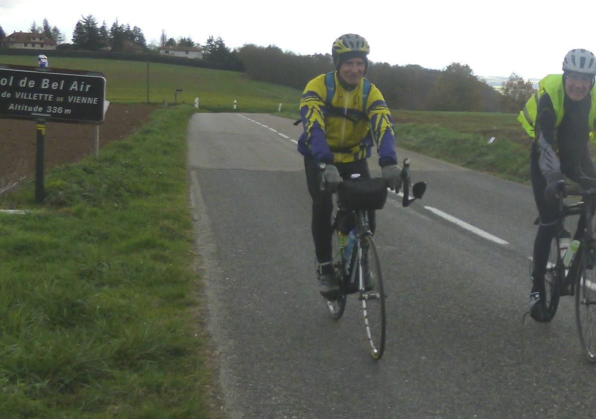 La première vraie côte, celle de l’hôpital de VIENNE, est gravie assez rapidement par ce petit groupe très homogène, et nous atteignons une petite route de crête, sans voiture, comme Pierre sait si bien les choisir avec sa succession de creux et de bosses.