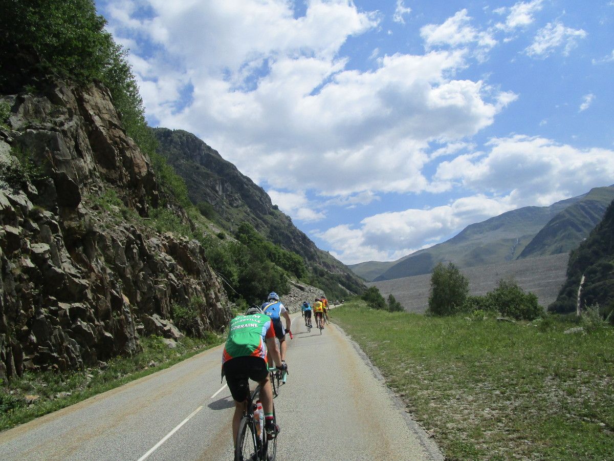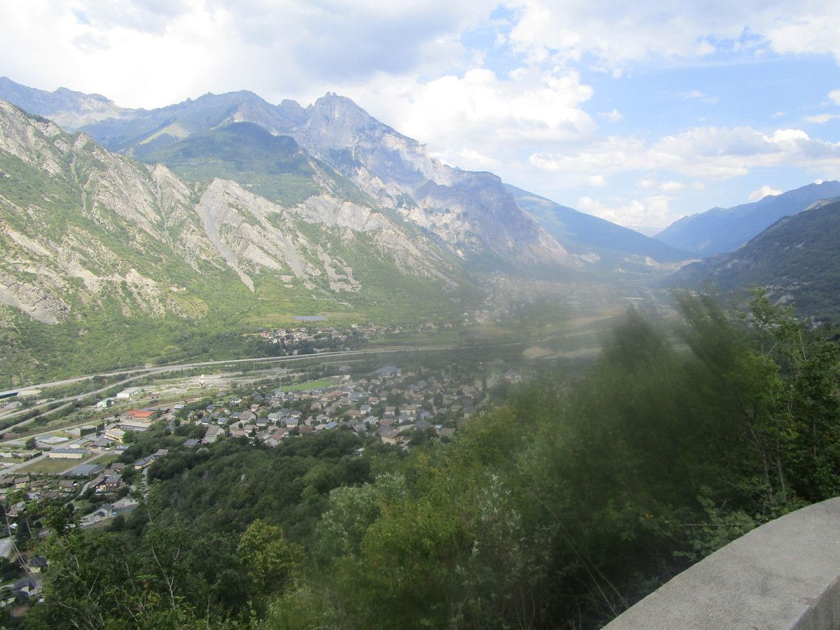 La descente tortueuse sur St Jean de Maurienne avec un arrêt forcé au dessus de la vallée pour attendre Marco qui a crevé aidé par Pierre