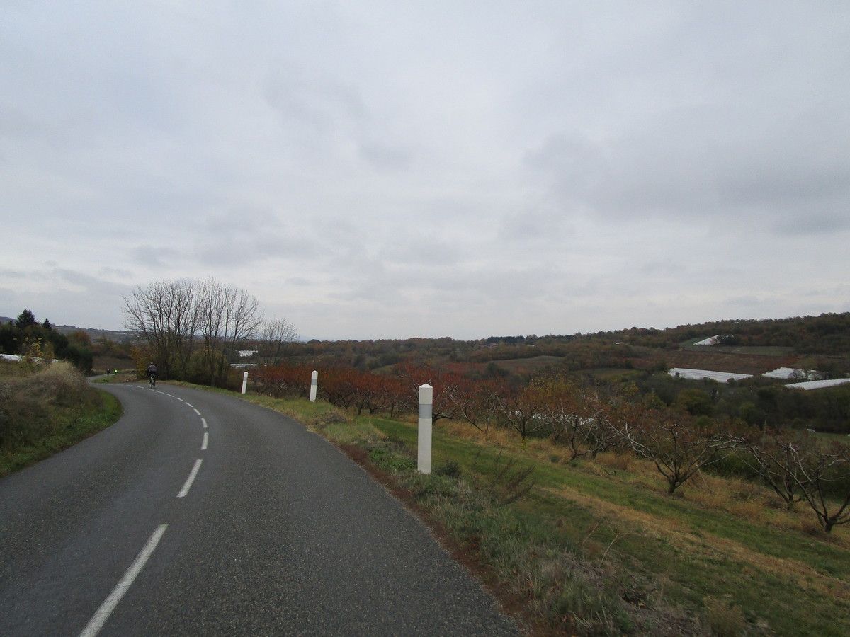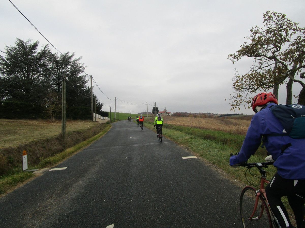 Ce bon moment du pique-nique prit fin et il a fallu repartir. Nous n'avions parcouru qu'une vingtaine de km, il en restait encore 32 ! La météo s'était réchauffée, toutefois, nous avions enfilé nos vestes thermiques avec plaisir. Le profil à venir était plutôt ''montées et descentes'' sans grandes difficultés mis à part une remontée un peu plus longue vers Orliénas.