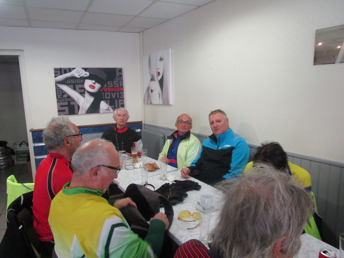 Ils étaient bien courageux ces 15 cyclos Codapiens pour venir à cette froide sortie automnale. Jean Serve pris dans les embouteillages de la route a fait demi-tour. Manu, plus chanceux a réussi à passer. Martine Dorier, n'étant pas très en forme a préféré rester au chaud. La seule féminine du groupe était représentée par Claude.