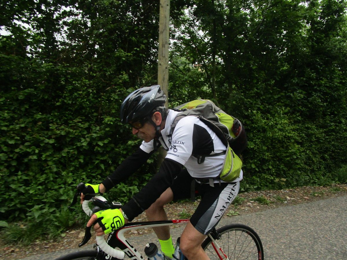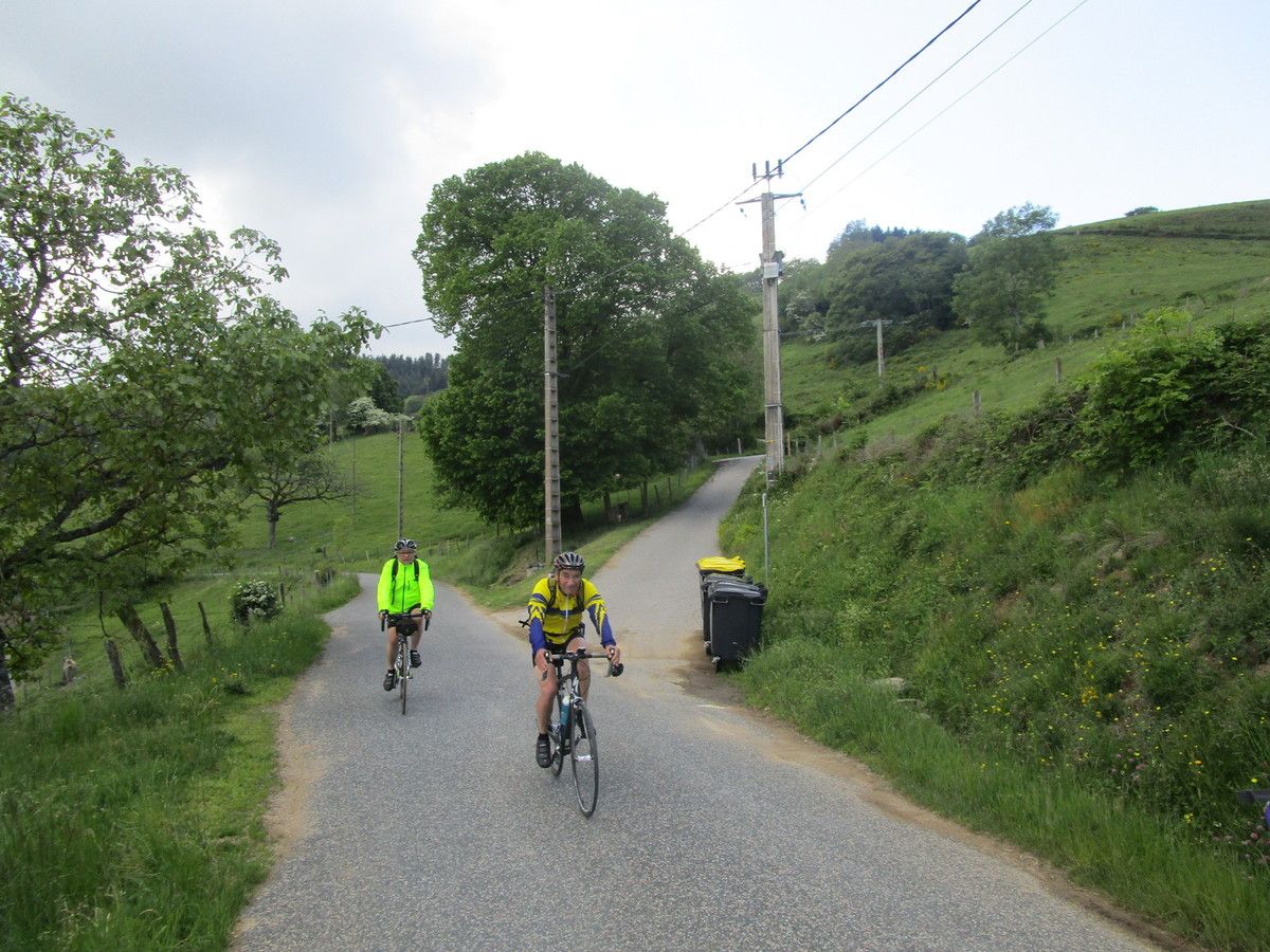 Les petits ennuis continuent,je crève avant Ste Colombe,Jean m'aide à réparer ,apparemment rien dans le pneu,ça repart vers le groupe qui attend