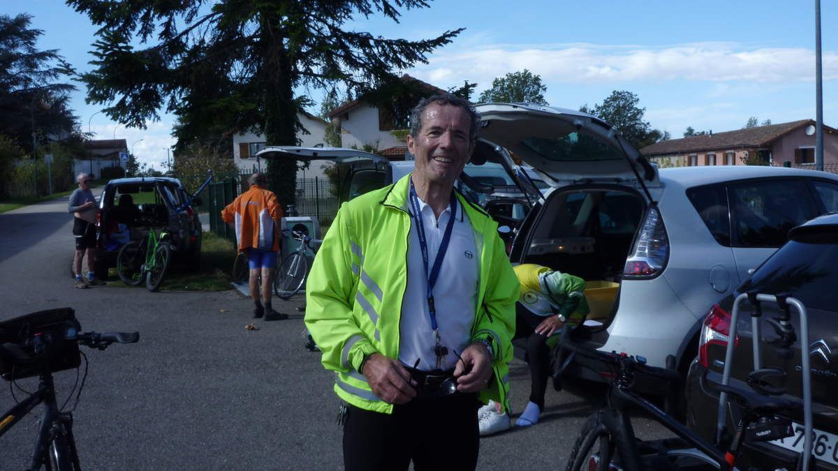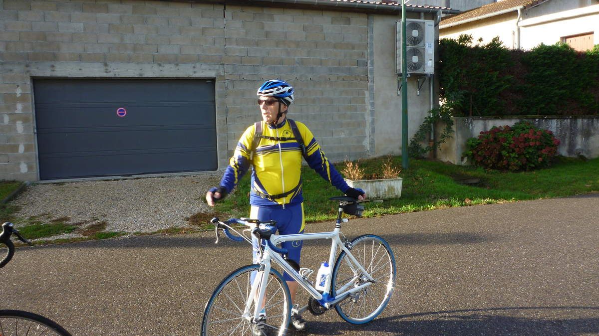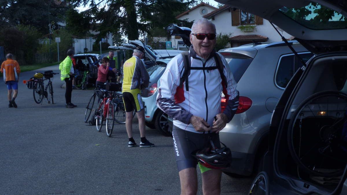 La sortie commence mal,une crevaison sur le parking occupe Robert d'entrée sous l'oeil du VAE de Robert,la réparation terminée le départ peut se faire.