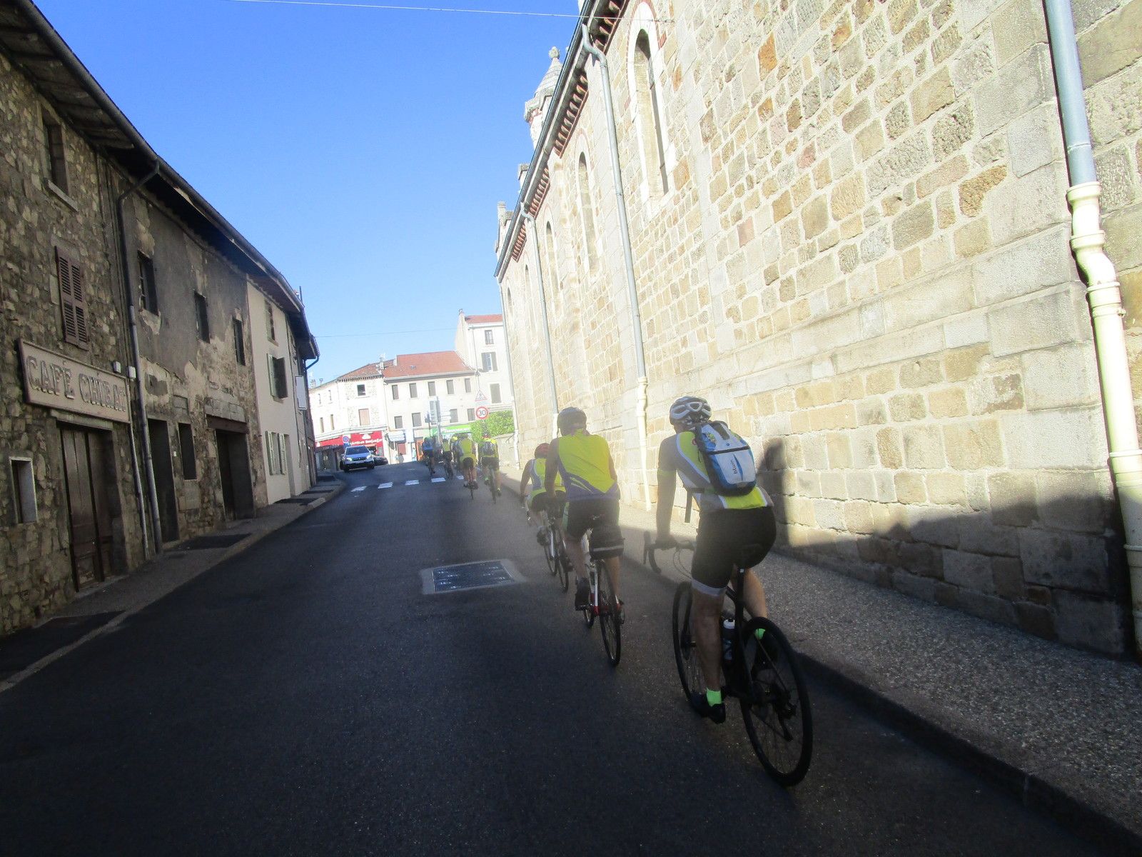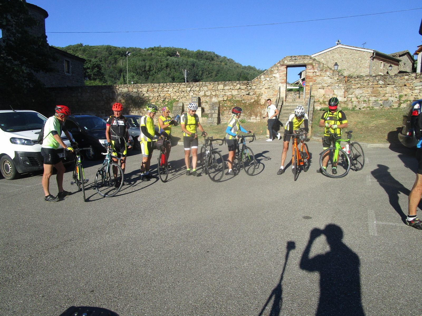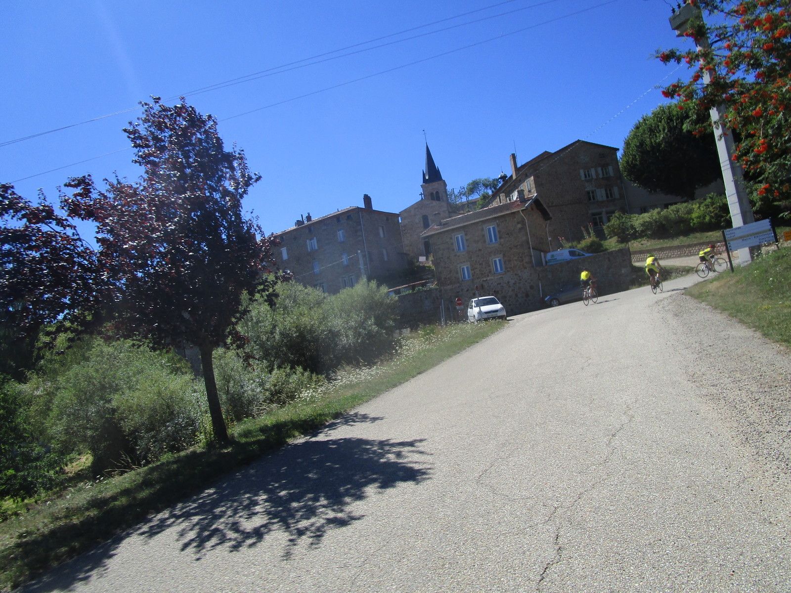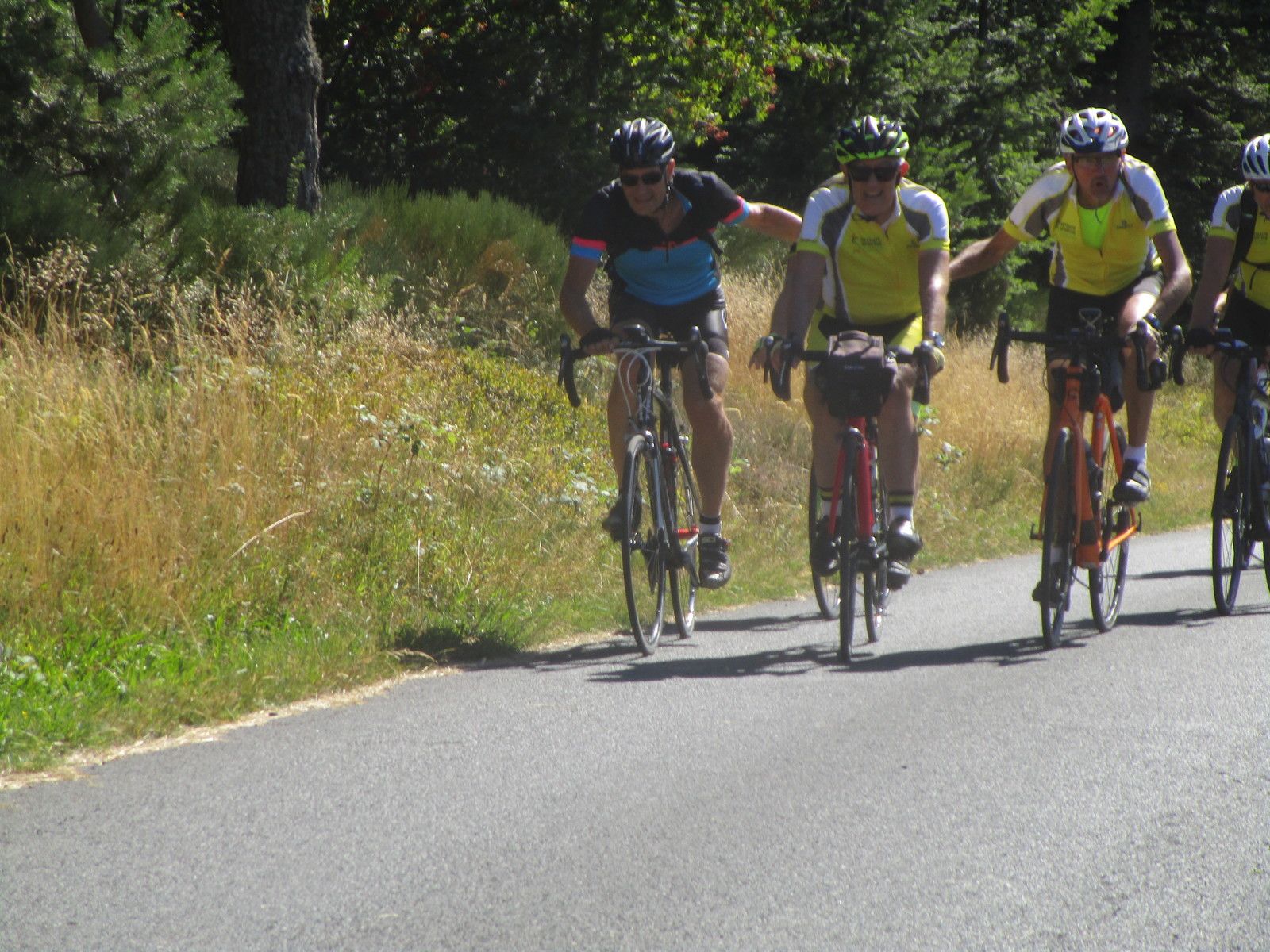 Crevaison à la sortie de Saint-Julien-Molin-Molette pour Henri. Louis et 3 costauds restent pour la reparation. Le reste du groupe avec Pierre continue : les costauds auront vite fait de nous rattraper. Avec le trio JLS + 2GPS (eh oui, Jean-Louis a 2 GPS, ceinture et bretelles pour la sécurité) pour ouvrir la route, pas question de se perdre.